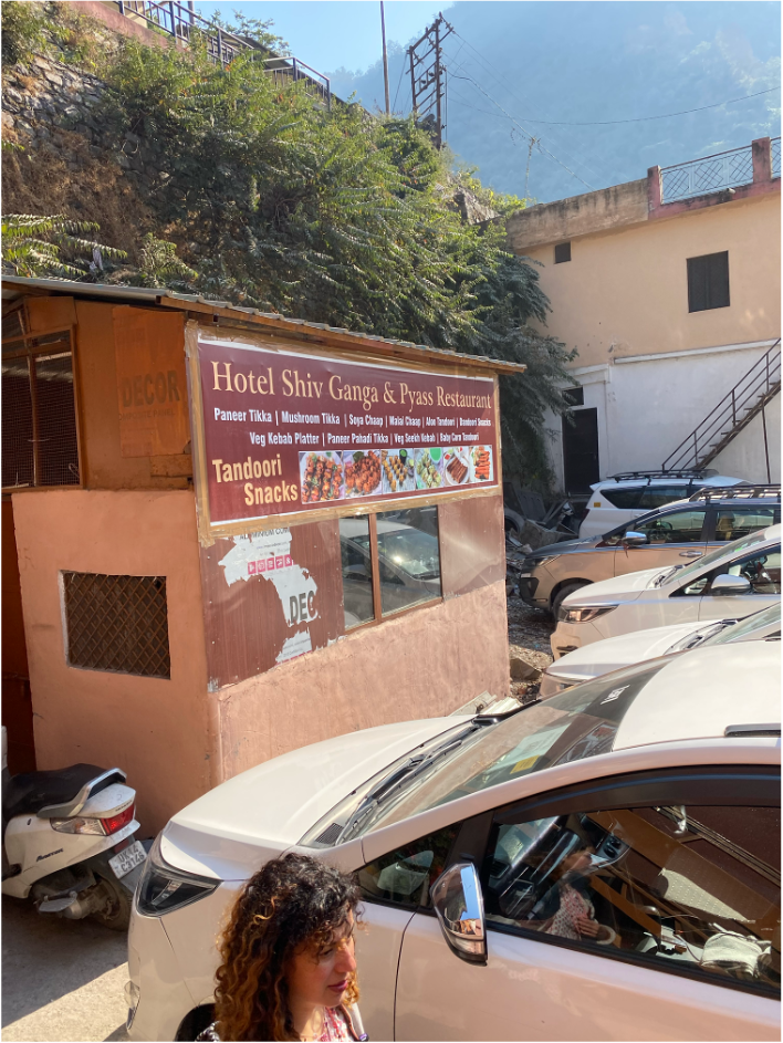 At the source of the river it is clean, with no bodies floating by. It is very swift, and there is a thriving business in this town: white-water rafting. I had always imagined the Ganges to be a quiet green river where tigers crouch down to lap at her waters, with their paws just touching the water’s edge.